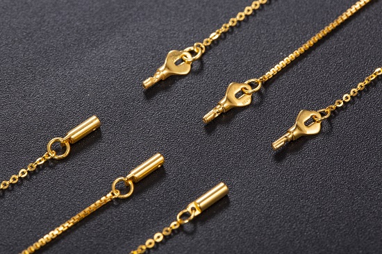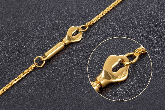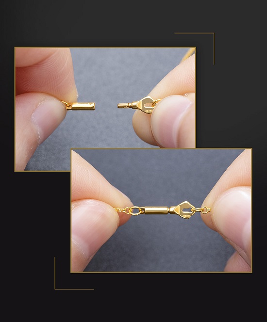 金弘珠宝针对市面上众多链扣的特点,让同心扣可无缝融合链条“身份识别印记”,实现字印牌、链扣一体化。除此之外,同心扣还有18K、22K等多种材质,可满足客户多样化需求。