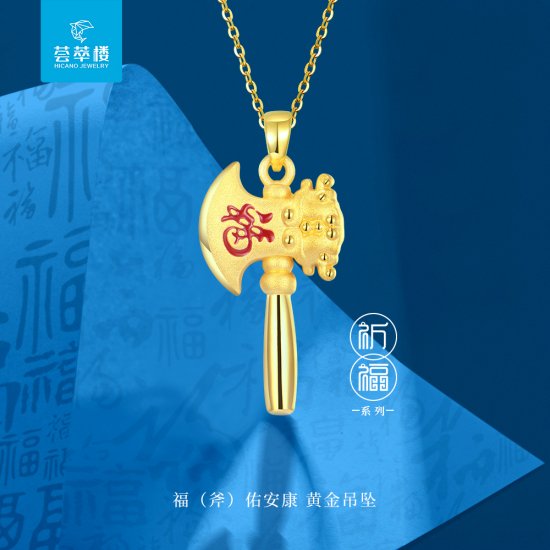 荟萃楼珠宝《祈福系列》福(斧)佑安康3D硬金吊坠