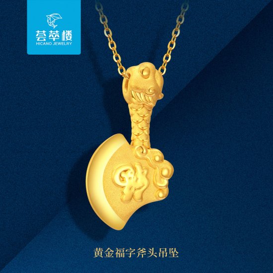 荟萃楼珠宝《祈福系列》福(斧)佑安康黄金吊坠